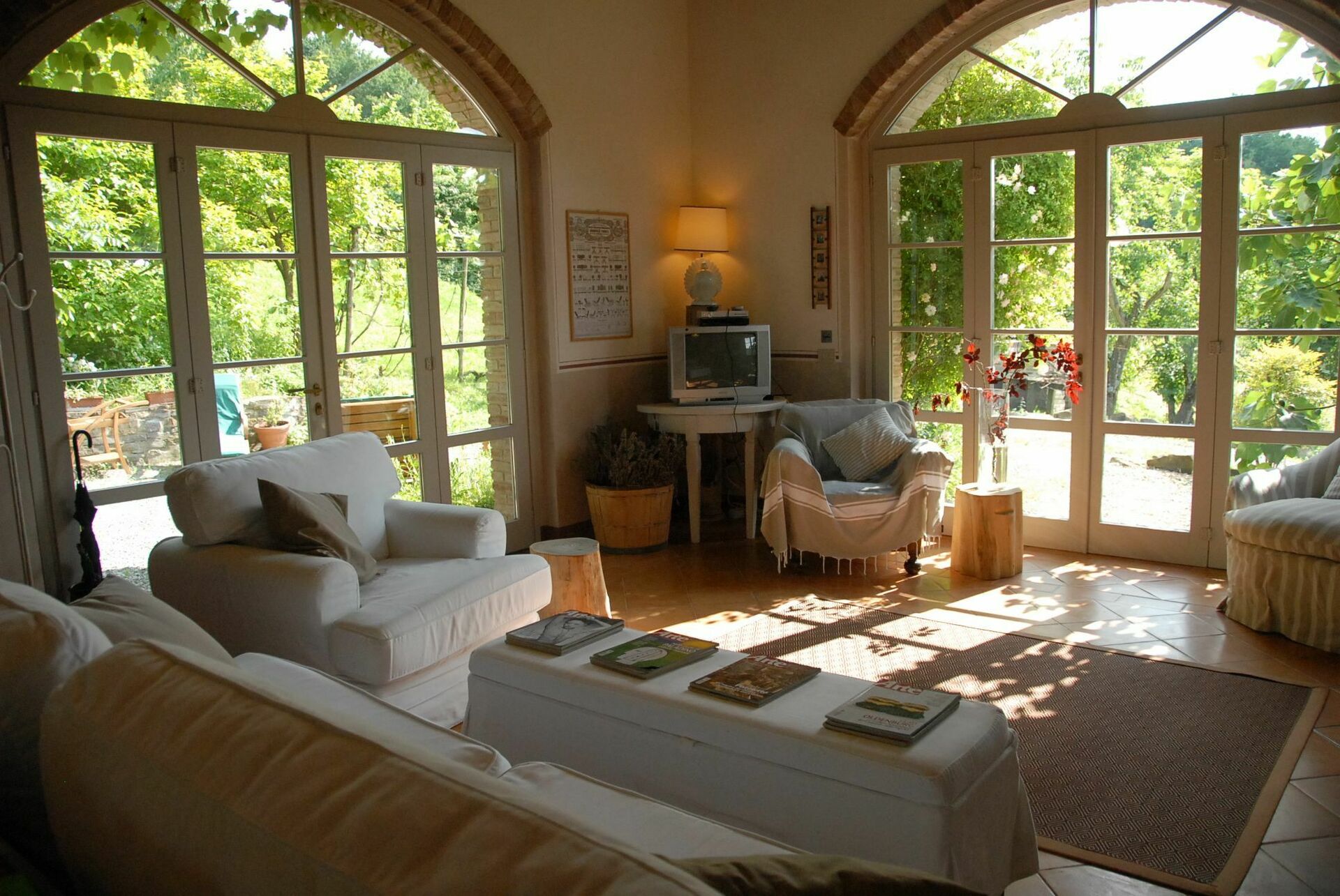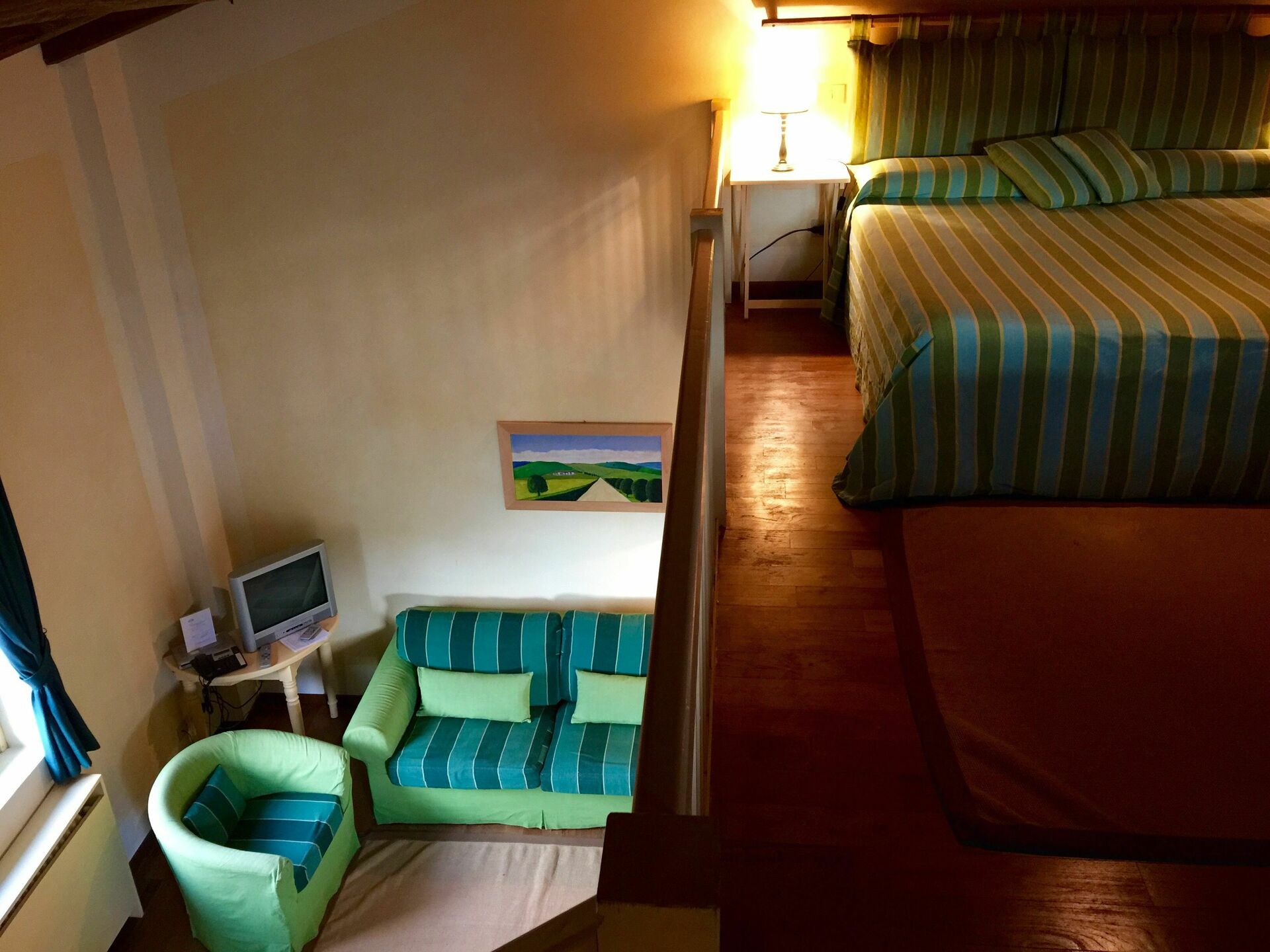 "SUITE VERDE" mit Wohnzimmer, Küche, Galerie mit Ehebett und zwei Einzelbetten, Bad mit Badewanne und Dusche. "SUITE PORPORA"Wohnzimmer und ein Einzelbett und auf der Galerie Ehebett und zwei Einzelbetten, Bad mit Badewanne und Dusche. Die Zimmer sind jeweils ausgestattet mit TV, Safe, Telefon und jedes hat Zugang nach draussen, Gäste WC.