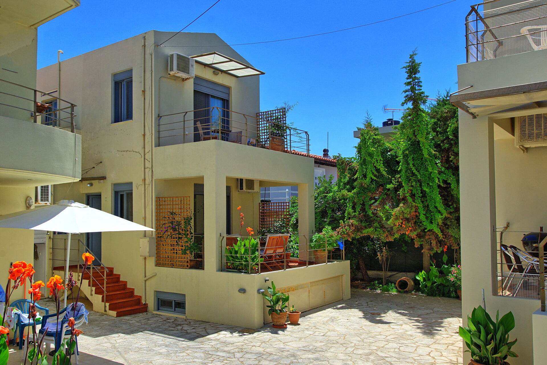 Houses by the Sea ist eine Immobilie, die aus zwei Wohnungen zur Miete auf Kreta besteht, in dem Ort Almiryda. Die beiden Wohnungen Kastellina und Emmanouela befinden sich nur 50 Meter vom Meer entfernt und in der Nähe der Stadt, die jeden notwendigen Service bietet. Die Appartements sind mit allem Komfort ausgestattet und geschmackvoll eingerichtet und verfügen jeweils über 3 Schlafzimmer (Kastellina) bzw. 2 Schlafzimmer (Emmanouela). Jede Wohnung verfügt über einen privaten Außenbereich für Outdoor-Aktivitäten. Die strategische Lage von Houses by the Sea ist ideal für diejenigen, die einen erholsamen Aufenthalt verbringen möchten, aber auch für diejenigen, die die schönsten Strände Kretas und die berühmtesten Touristenziele erreichen möchten. Den Gästen jeder Wohnung steht zur Verfügung : Meer in 50 Metern Entfernung, Geschäfte, Restaurants und Aktivitäten in wenigen Metern, Klimaanlage, Internetverbindung durch W-Lan , private Terrasse mit Tisch, Stühlen und Grill Entfernungen: Meer in 50 Meter; Geschäfte, Bars, Restaurants und verschiedene Aktivitäten (Autovermietung) nur wenige Meter entfernt; Chania in 25 km Entfernung; Flughafen 35km.. Bitte prüfen Sie sorgfältig, ob in der Unterkunft vor Ort zusätzliche Gebühren zu zahlen sind!